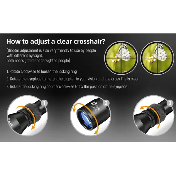 Le champ d'application comprend une structure intérieure et extérieure spéciale pour contrôler l'interaction entre les tubes intérieur et extérieur du viseur, ce qui offre une fiabilité durable dans ces interactions et garantit que le réticule ne tourne pas lors des ajustements. Ce design intelligent rend le viseur antichoc et permet un ajustement plus précis du vent et de l'élévation.