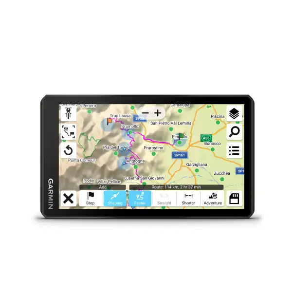 > Commande au guidon : Contrôlez la carte pendant que vous roulez en appuyant simplement sur des boutons, sans lâcher le guidon des mains, grâce au commande au guidon (vendu séparément) couplé à votre GPS.