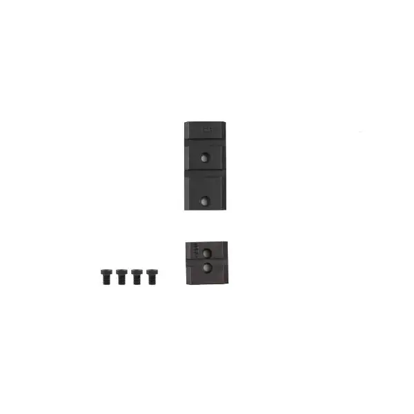 Le kit inclut deux embases (référence M902-801M) et quatre vis de fixation, pour un montage rapide et sécurisé. Sa largeur de 21 mm et sa hauteur de 5 mm permettent une intégration fluide avec le pas Weaver standard.